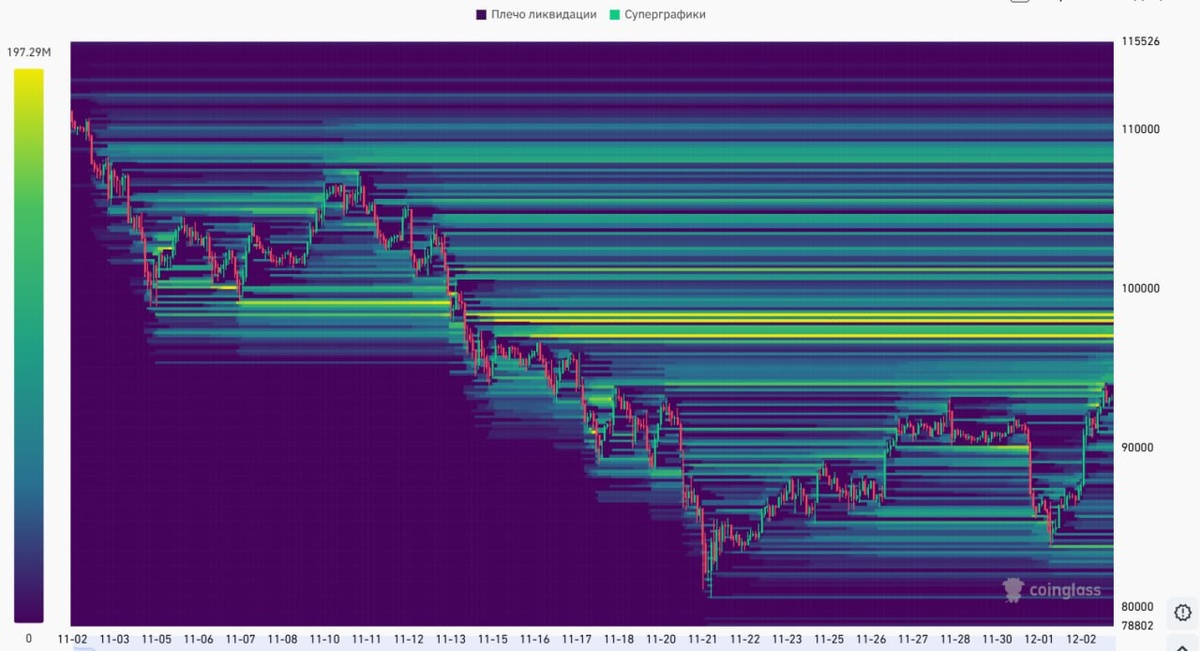 Ребят, судя по карте ликвидаций, вполне вероятно, что сразу уйдем на 98400, там последняя ближайшая полка ордеров шортистов 👀