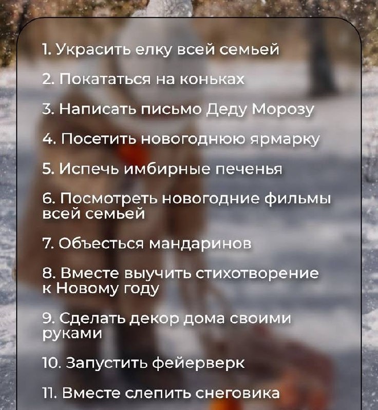 Список «Чем заняться зимой с ребенком» и заодно создать НГ настроение. Пример. Сохраняйте кому нужен😉
