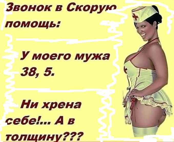 Лучше быть последним трусом, чем первым в очереди к травматологу... ------------------------------------------------ Запомни одно золотое правило: если ты себя отговариваешь - это твоё. Если ты себя уговариваешь - это не твоё. ------------------------------------------------- Зачем кошка тянет абсолютно ненужную ей репку, если впереди, враг, а позади — ужин... --------------------------------------------------- Ой, Фима, пора таки купить шонибудь от комаров! И шо ты предлагаешь? Ну, например, квартиру в Англии. ----------------------------------------------------- Здравствуйте, это анонимный чат доверия ФСБ. Да, Анатолий. А, почему с телефона матери пишете ? ------------------------------------------------------ У нас нет свободы слова! Один мужик отсидел 15 лет всего лишь за одну фразу: Всем лечь на пол, это ограбление ! ------------------------------------------------------ Тебя за что повязали? 148-ая, часть вторая... Проведение оккультных обрядов повышенной пожарной опасности с пр