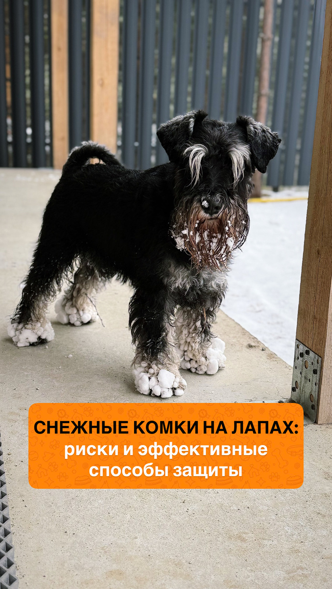 Снежные комки на лапах собаки могут представлять опасность по нескольким причинам. Они не только вызывают дискомфорт, но и могут привести к травмам, переохлаждению или контакту с вредными веществами. Рассмотрим основные риски и способы защиты. Механические повреждения Снежные комки, набивающиеся между подушечками лап и шерстью, могут: • Натирать кожу, вызывая раздражение, трещины и мокнущие раны. • Замерзать, образуя ледяные «камешки», которые мешают ходьбе и травмируют ткани. • Скрывать острые предметы (стекло, гвозди, осколки), которые могут поранить лапы. Особенно уязвимы длинношёрстные собаки, у которых снег часто сбивается в плотные комки. Химические риски Городской снег часто содержит реагенты (соль, хлорид кальция, другие химикаты), которые: • Сушат и разъедают кожу, вызывая трещины и язвы. • Проникают в раны, усиливая воспаление и боль. • Попадают в организм при вылизывании лап, что может привести к отравлению, гастриту или повреждению внутренних органов. Кр