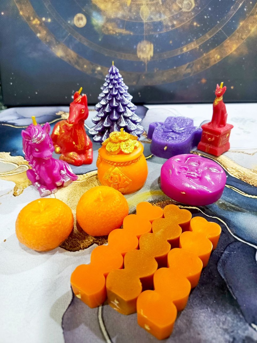 Магия Нового года 🎄 🕯Готовлю свечи на продажу Ёлки, мандарины, символы года Лошадь. ⚡️Все свечи заряжены на благополучие, благосостояние, успех и удачу в новом году. Сделаны с любовью 💙 Как вам? #свечи