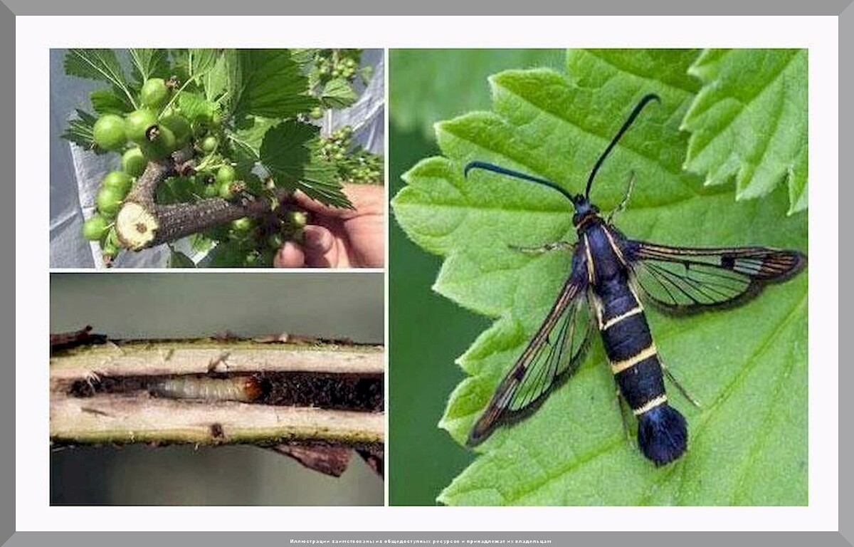 Друзья, садоводы! Бывало у вас такое: вроде здоровый с виду куст смородины или малины вдруг без причины вянет, ломается у основания, а если срезать ветку — внутри черная пустота? Я долго не могла понять, что происходит с моей чёрной смородиной, пока не разрезала одну из «внезапно» засохших веток. Внутри был настоящий тоннель, а в нём — розоватая гусеница. Так я познакомилась со стеклянницей, самым коварным и неуловимым вредителем ягодных кустов. Это не просто насекомое — это диверсант, который работает изнутри, и когда вы замечаете проблемы, бывает уже поздно. Но отчаиваться не стоит! После нескольких сезонов борьбы я выработала систему, которая действительно помогает. Стеклянница — это бабочка, похожая на осу с прозрачными крыльями. Но вред наносят не она, а её личинки, которые живут внутри веток. Тревожные сигналы: Этап 1. Механическое уничтожение (октябрь-апрель)