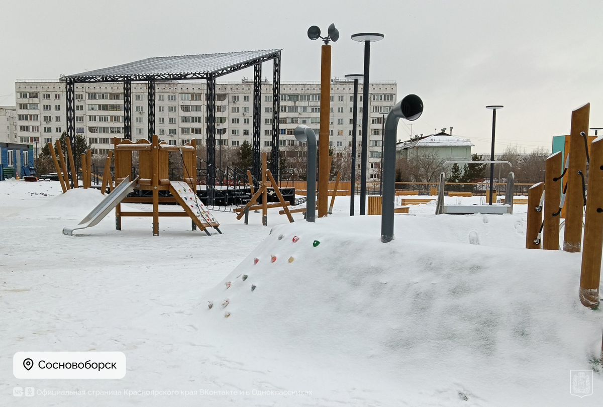 Пространство обновили благодаря победе на Всероссийском конкурсе лучших проектов благоустройства малых городов нацпроекта #ИнфраструктураДляЖизни. На площади обновили тротуары и систему освещения, установили сценический комплекс, игровой комплекс для детей, качели, новую уличную мебель. Летом здесь начнут работать два фонтана — каскадный и сухой, чаша которого установлена под землей. Помимо Сосновоборска, благодаря нацпроекту в этом году новые парки появились в Шарыпове, Назарове, Бородине, Иланском и Минусинске.