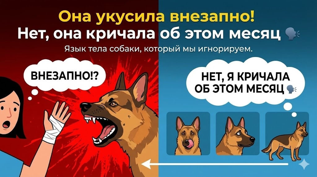Самая страшная фраза для меня как специалиста по поведению это «внезапно». «Он внезапно набросился», «Она внезапно отказалась идти гулять». Но в мире собак почти ничего не бывает внезапно. Прежде чем закричать (укусить или залаять), собака очень долго говорила шепотом. Она облизывалась, отворачивала голову, замирала, показывала «китовый глаз» (когда видны белки). Но что происходит, если мы этот шепот не слышим? Если постоянно игнорировать сигналы, собака перестает их показывать. Представьте, что вы вежливо просите собеседника не наступать вам на ногу. Раз просите, два, десять... А он продолжает. В какой-то момент вы поймете, что вежливость не работает. И у вас останется два выхода: ➡️Смириться и терпеть (Так называемая выученная беспомощность). Собака «уходит в себя», становится удобной, тихой... но внутри копится чудовищный кортизол, который потом бьет по здоровью. ➡️ Ударить (Активная оборона). Собака перестает предупреждать. Она сразу кусает, потому что научилась, что «по-хорошем