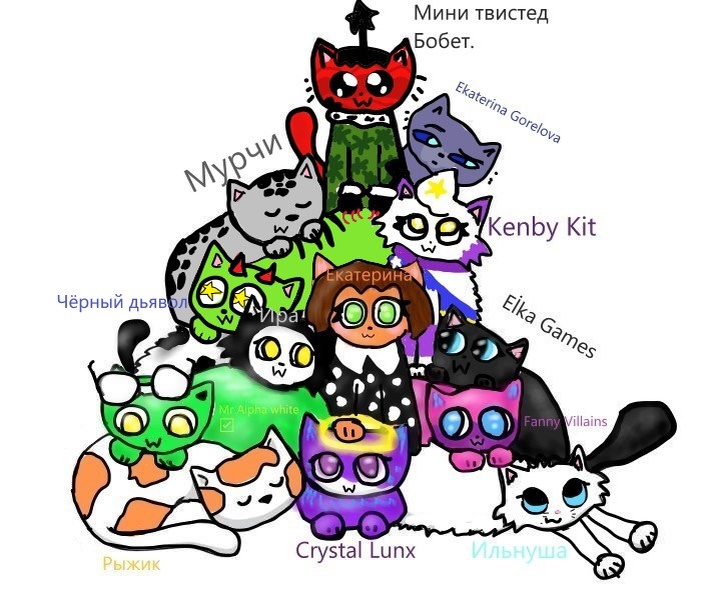 Кого добавить? Пишите в комментариях! Тогда добавлю. Некоторых добавила, как просили! А кого не добавила то: нарисуйте себя(ну не в реальности!!!) по фантазии в форме котика! И тогда добавлю! В комментариях можете мне скинуть ваше нарисовавший рисунок в форме кота и я вас добавлю(нарисую) сюда! И да.. прочитайте это! Если ВЫ хотите добавится либо покажите рисунок не важно чей свой или не свой или просто ОПИШИТЕ персонажа. Просто если когда вы будите писать что я хочу добавится пишите так: Можно я добавлюсь? И потом просто опишите персонажа своего выдуманного(естественно животное). А то мне надоело спрашивать... Я когда читаю что все пишут можно я добавлюсь то: Я им отвечаю Какое у тебя выдуманное животное или опиши его. А некоторые на это просто игнорят...😟 Ещё 😳30😳подписчиков добавилось=: °°☆[×🎄𝐊𝐫𝐨𝐬𝐡𝐤𝐚_𝐊𝐫𝐞𝐚𝐭𝐢𝐯❄×]☆°° #Фан Ю-ю:3 [Остальные в описании^^], Пика, •|★‹♪N1KY♪›★|•#за_бебешку.., an0maliya, ❄🪄☃️𝕂𝕦𝕣𝕠𝕄𝕒𝕜𝕦🍪🎀☕, [🎀°•.>В4кса_кит182`❄️] (Культ новогодних