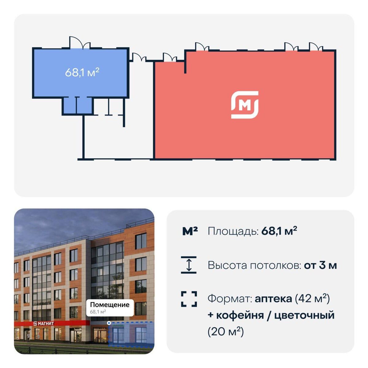 🔈ГАБ с аптекой и кофейней в Санкт-Петербурге ▪️ Окупаемость: 9.3 года или 112 МАП! 📎 Характеристики помещения: ▪️ Адрес: ж/к Парадный Ансамбль в престижном Московском районе (15 мин до метро Московская) сдача дома: IV квартал 2026 года. ▪️Площадь: 68.1 м² (16.7 кВт) 🪙 Цена: 25 790 000 рублей. (Рассрочка до марта 27 года) 🪙 Месячный арендный поток МАП: 230 000 рублей в месяц. ▪️ Аптека Здравсити - 42 м², аренда 150 000 руб./мес.Срок договора 7 лет. Безусловная индексация 5% ▪️ Кофейня / Цветы - 20 м², аренда 80 000 руб./мес. Срок договора 5 лет. Безусловная индексация 7% ▪️ Преимущества: ▪️ Первая линия на въезде в ж/к на 4800 домохозяйств ▪️ Расположен дверь в дверь с Магнитом (330 м2) с одной стороны и строительным магазином (260 м2) с другой стороны ▪️ Ограниченное количество коммерческих помещений (расположены только в 2-х домах) ▪️ Экономика: 🪙 Годовой арендный поток (ГАП) — 2 760 000 рублей Окупаемость — 9.3 года. ▪️ Ожидаемая доходность объекта при продаже чер