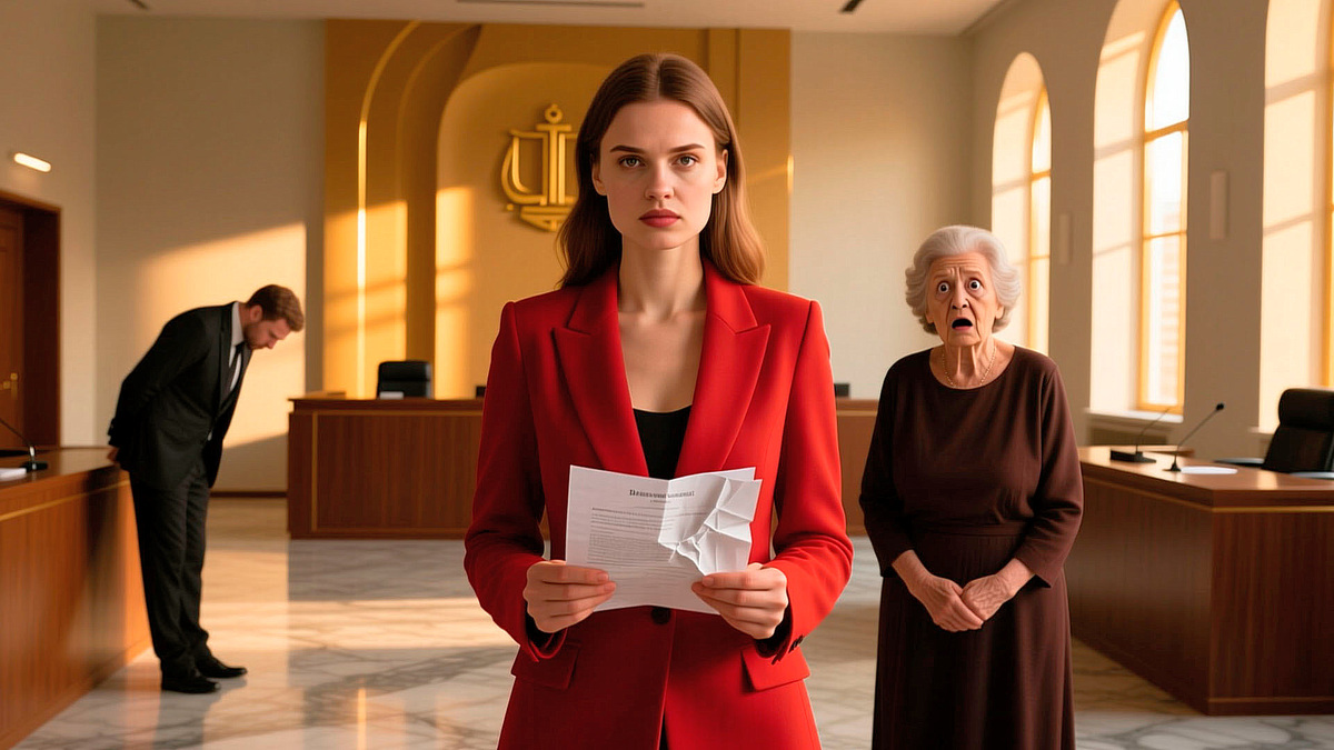 Суд. Атмосфера была душной, как в преисподней. С одной стороны — Людмила Семеновна, в бархате, с идеальной прической, играющая роль пострадавшей бабушки. Рядом Витя — бледный, потный, неспособный связать двух слов, потому что ложь всегда требует больше усилий, чем правда.