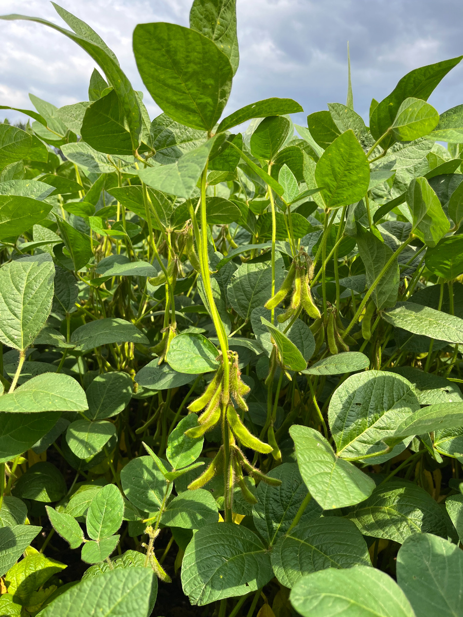 Разница в азоте небольшая, всего 12 единиц, но агрохимических анализ почвы, проведенный перед посевом, показывает низкое содержание общего азота (менее 10 мг/кг) и нитратного (менее 10 мг/кг) в пахотном горизонте, данная тенденция наблюдается на всей территории РФ. Потребление азота любой культурой начинается при формировании первичной корневой системы, а образование клубеньков начинается с фазы первого тройчатого листа, а иногда чуть позже. В этот период соя потребляет азот из почвы, при его отсутствии у культуры наблюдается голодание. Дефицит азота проявляется светлой окраской старых листьев.