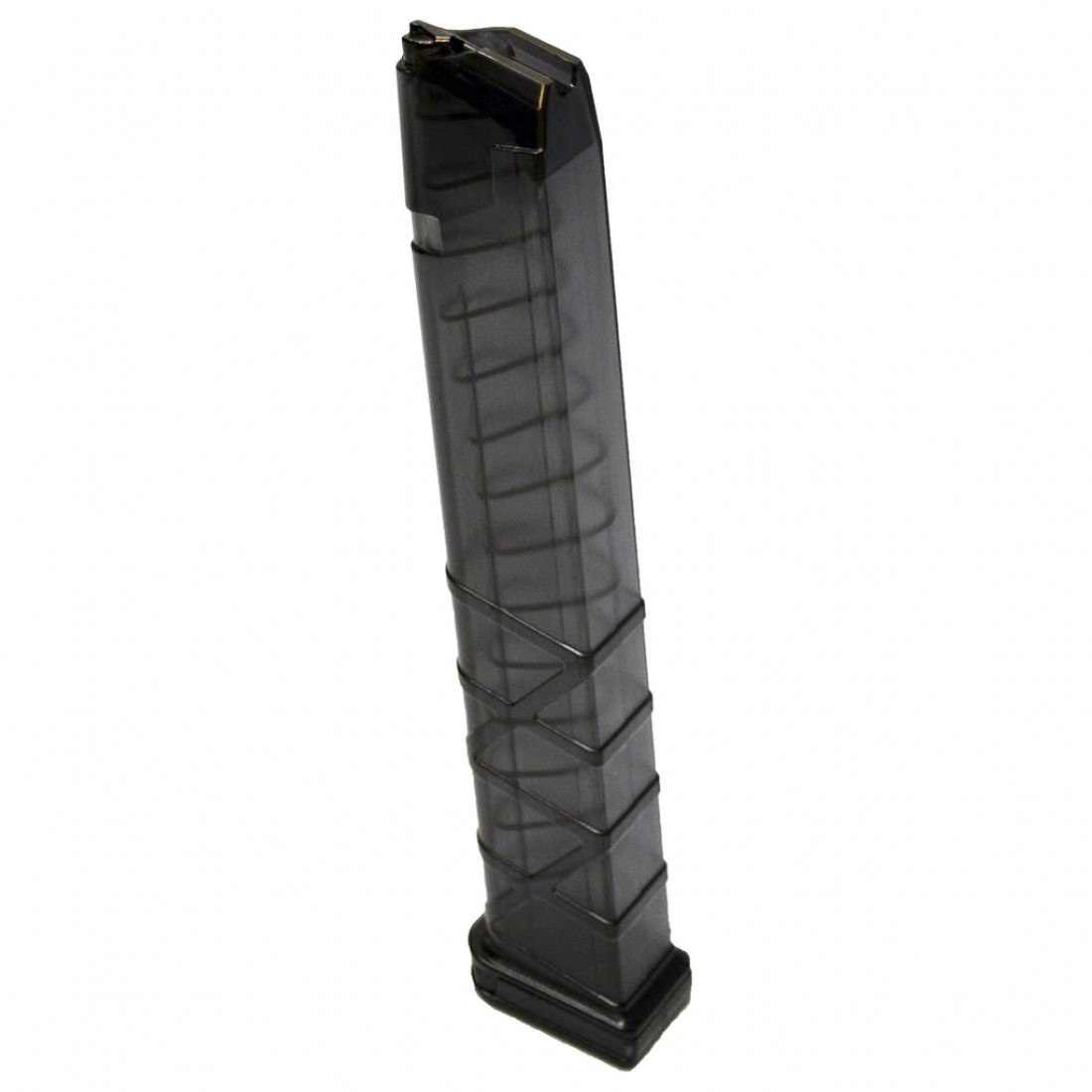 Магазин от Utas Defense на 33 патрона для Glock в калибре 9х19 и совместимых с ним карабинов. - Выполнен из прозрачного полимера, что позволяет визуально контролировать остаток патронов. - Имеет рифление на нижней части, что положительно сказывается на комфорте удержания и извлечения магазина. - Магазин имеет пятку отличную от оригинальных магазинов, но позволяющую произвести разбор без специального инструмента. Характеристики: Габариты (ДхШхВ): 4.5 х 2.8 х 20.9 см Масса: 63 г Материал: полимер Цвет: прозрачный серый Емкость: 33 патрона Цена: 6 280,00 р https://rusdefense.ru/9443-Magazin-dlya-glock-prozrachnyj-33rd