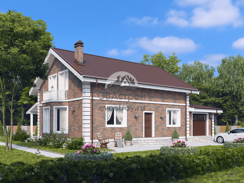 Кровля: металлочерепица Фасад: облицовочный кирпич 120 мм Стиль: европейский