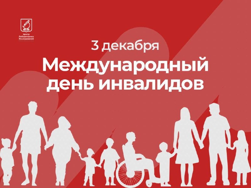 Международный день инвалидов Сегодня, 3 декабря, мы отмечаем важный день — Международный день инвалидов. Это не праздничная дата, а напоминание о том, что рядом с нами живут люди с ограниченными физическими возможностями, которым труднее, чем всем остальным. Дата была установлена Генеральной Ассамблеей ООН в 1992 году для привлечения внимания к правам и нуждам людей с ограниченными возможностями. 🔍 Инвалидность затрагивает каждого шестого жителя планеты — около 1,3 млрд человек живут с различными формами нарушений здоровья. Это серьезная проблема, требующая нашего понимания и солидарности. 🔬 МНПЦЛИ обеспечивает возможность пройти лабораторные исследования инвалидам любой группы со скидкой 15%. Мы стараемся, чтобы визит был максимально спокойным и комфортным: — помогают опытные, внимательные медицинские работники, — предусмотрены индивидуальные условия для людей с ограниченной подвижностью, — сотрудники всегда готовы уделить больше времени и помочь пройти все этапы без спешки. Заб