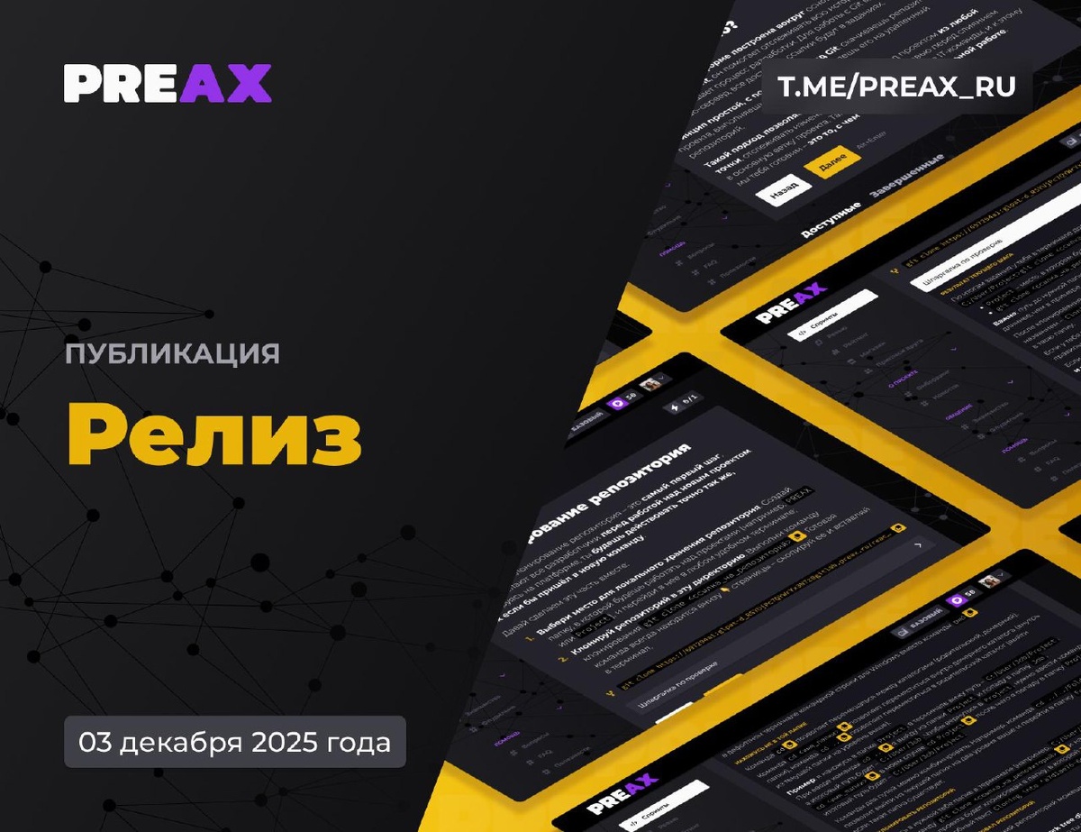 📣 РЕЛИЗ — 03 декабря 2025 Сегодня рассказываем об очередном обновлении! 👀 🤨 GIT Первое и главное, на чем спотыкаются большинство участников, при этом неважно, что они заканчивали и в какой крутой, дорогой и новомодной школе они учились – это работа с git. При этом каких только ошибок и вопросов мы не видели: как скачать репу, куда вставлять команду для клонирования, как отправить изменения, путаница с названиями веток и коммитов, отправка изменений не в ту ветку и т.п. Поэтому в сегодняшнем релизе речь пойдет об изменениях по тренировке работы с git для новых участников. 👋 ОТДЕЛЬНАЯ ТРЕНИРОВКА Если раньше тренировка работы с гит была частью первых трех спринтов, пока новые участники только осваиваются, то теперь уделили этому особое внимание – теперь ее необходимо пройти до того, как сможете приступить к работе над спринтами. Соответственно, все те, кто еще не прошел аналогичную тренировку в спринтах, будут перекинуты к этой тренировке, а после ее завершения сможете уже при