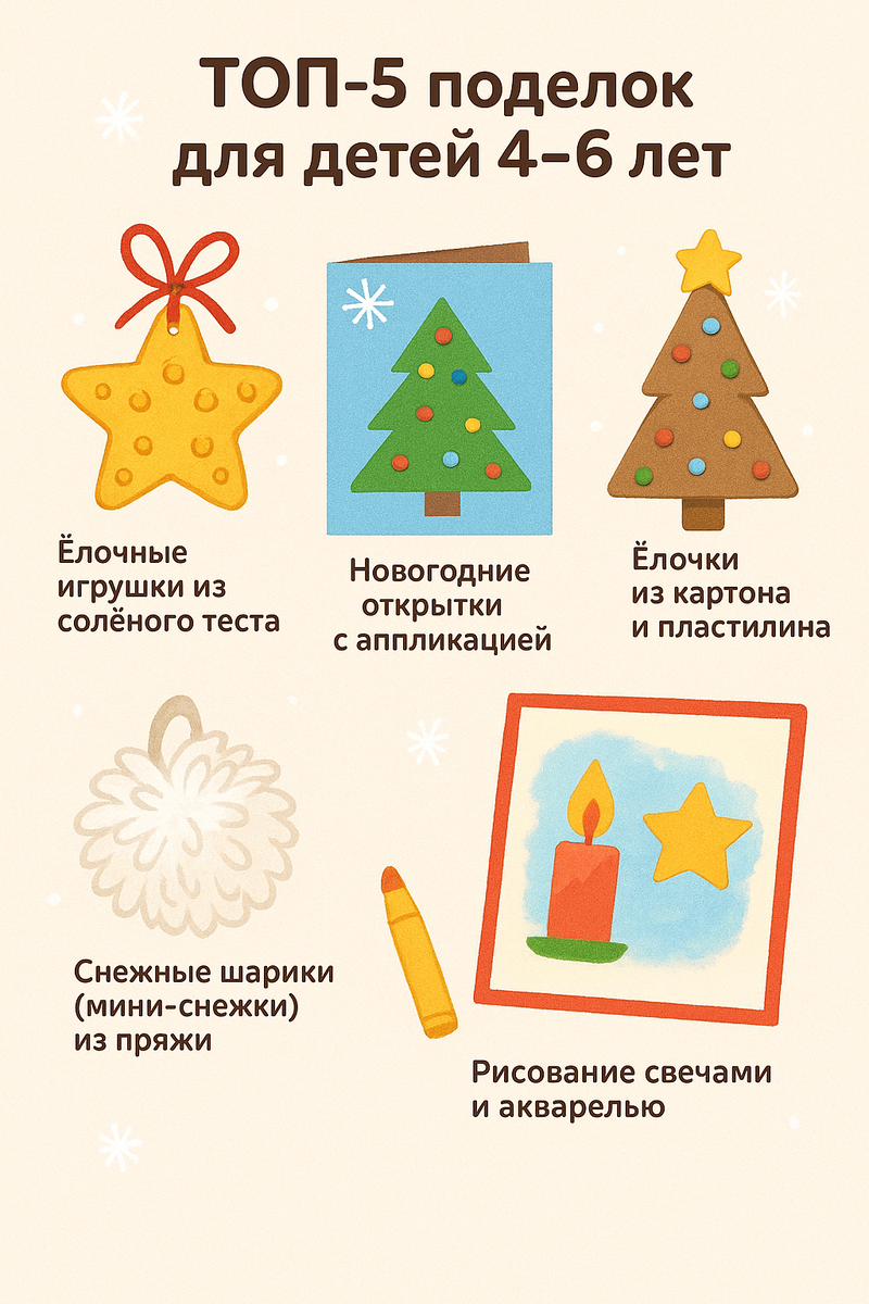 Лепите вместе разные формы — звёзды, снежинки, сердечки. После высыхания ребёнок может раскрасить их красками и посыпать блестками. Идеально для развития моторики! 2. Новогодние открытки с аппликацией