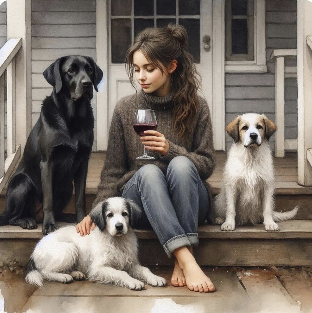 Выпустила собак во двор побегать. Села на крыльце.