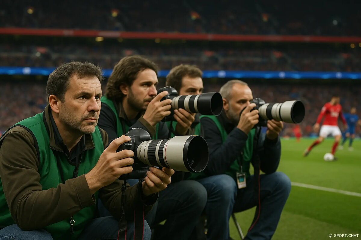 Техника — отдельная глава футбольной жизни. Почти у всех у кромки — тяжёлые репортажные камеры с огромными «трубообразными» объективами. Длиннофокусная оптика позволяет снимать крупно даже с другой стороны поля, но за это приходится платить весом и усталостью: многие фотографы весь матч сидят на маленьких складных стульчиках или прямо на коврике на коленях, прижимая объектив к плечу. В рюкзаке — второй корпус, более короткий объектив для празднования голов у углового флажка, вспышка на случай послематчевых церемоний, ноутбук, карты памяти, запасные аккумуляторы.