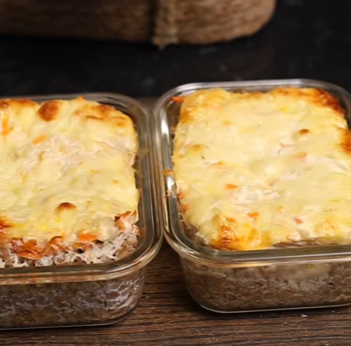 Б-75 Ж-15 У-50 640 ККАЛ в одном контейнере. Нам понадобится (на один контейнер): Греча 60 гр 120 мл воды Куриное филе 180 гр Лук, морковка, шампиньонов по 40 гр 100 гр Греческого йогурта Легкий сыр 30 гр Берем стеклянный контейнер. Высыпаем в него гречку, заливаем водой, и выкладываем куриное филе. Морковка, лук, шампиков распределяем сверху. Для заливки: Сыр натираем на крупной терке. Смешиваем 100гр греческого йогурта, яйцо и 30гр сыра, заливаем в наш контейнер. Убираем в духовку на 1ч температура 180 градусов. ПП обед готов очень удобно брать с собой.