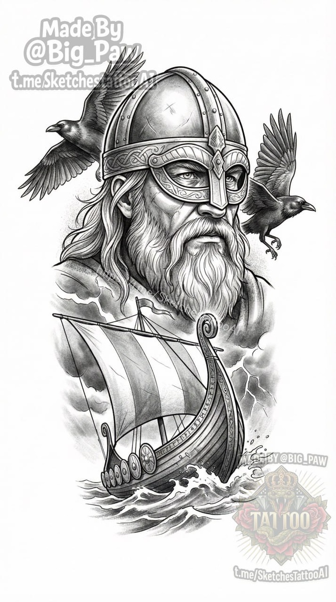 #2838 Подборка по запросу подписчика - тату на плечо в скандинавском стиле, с дракаром и викингам 🧠 SYNTX - тут создан эскиз 💎 Информация - все услуги 💀 Эскизы от нейросети #викинги #скандинавская #реализм #эскиз #тату #татуировка