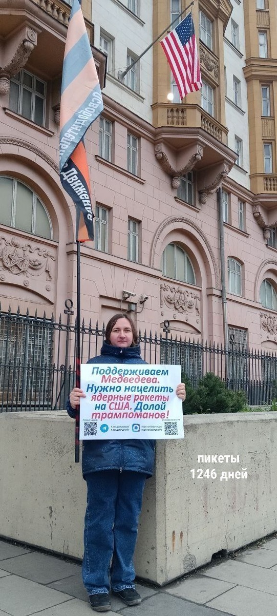 Одиночные пикеты у посольства США. 1246 дней Москва, 3 декабря 2025 #ПосольствоСША