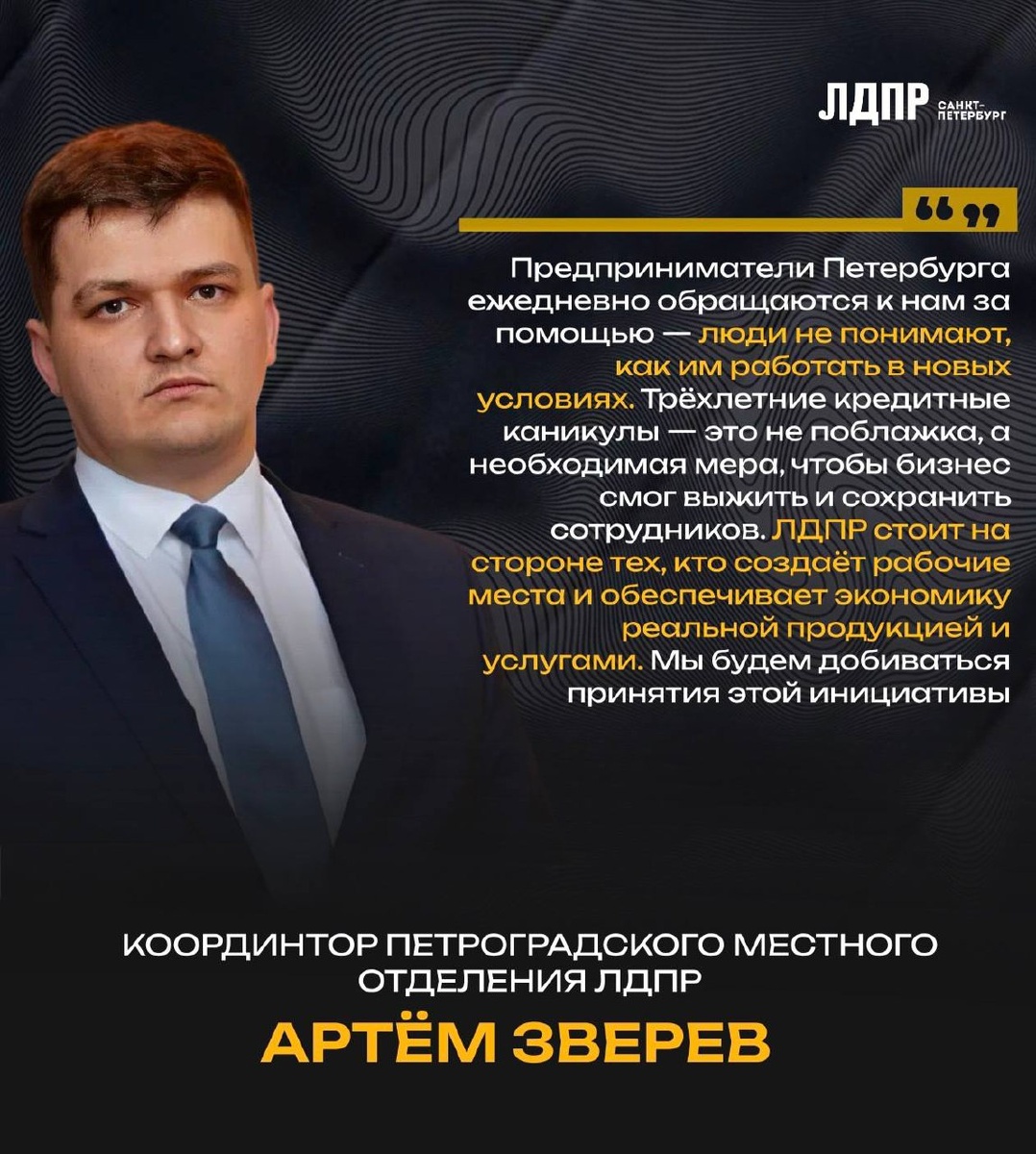 ЛДПР предложила ввести трёхлетние кредитные каникулы для малого бизнеса Санкт-петербургское региональное отделение ЛДПР поддерживает инициативу депутатов нашей фракции в Госдуме во главе с Председателем партии Леонидом Слуцким. Мы считаем, что малому бизнесу необходимо дать реальные инструменты для выживания и адаптации к масштабным изменениям в налоговой системе. Сейчас предприниматели оказались под двойным давлением: снижение лимита по УСН втрое - с 60 до 20 млн рублей - и рост НДС до 22% создают ситуацию, в которой тысячи компаний рискуют закрыться. Просрочка по корпоративным кредитам уже достигла 24%, а проблемная задолженность вплотную приблизилась к трём триллионам рублей. Около 700 тысяч компаний и ИП испытывают трудности с регулярными платежами. ЛДПР предлагает ввести кредитные каникулы на весь период реформы - с 2026 по 2028 годы. Это позволит предпринимателям адаптироваться, перестроить финансовые планы и сохранить рабочие места. Сегодняшние механизмы каникул дают только ш