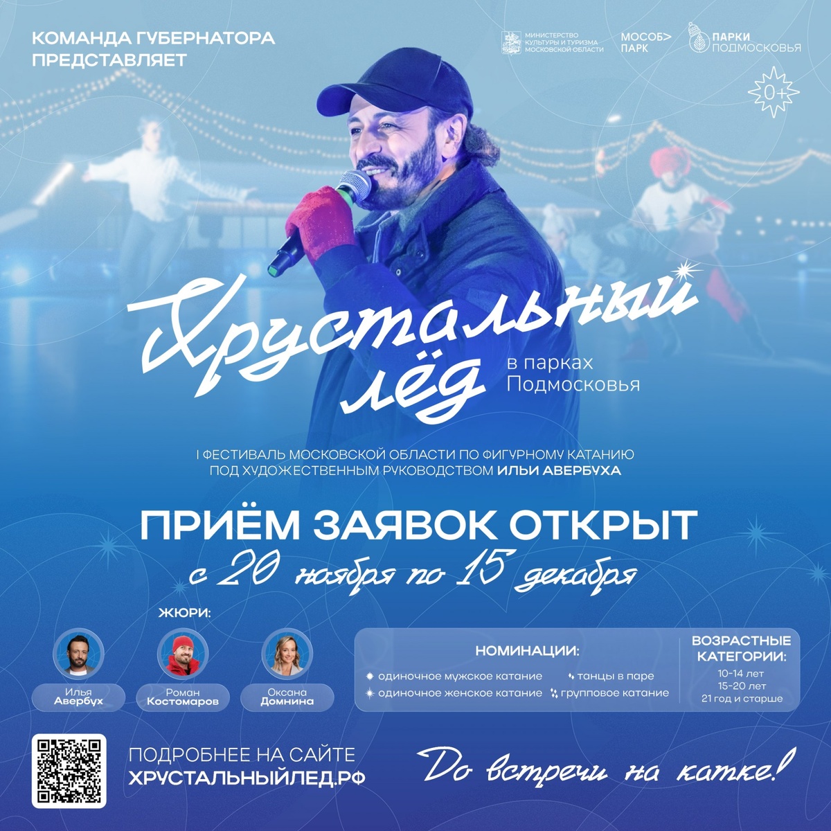 ✨ Фестиваль «Хрустальный лед»! ⛸️Принять участие в проекте могут фигуристы-любители в категориях: ▪️10–14 лет; ▪️15–20 лет; ▪️21 год и старше. 👉🏻 Подать заявку можно на сайте до 15 декабря: хрустальныйлед.рф/ На отборочном этапе участники выступят в одной из четырех номинаций: 🔹 «Одиночное мужское катание»; 🔹 «Одиночное женское катание»; 🔹 «Танцы в паре»; 🔹 «Групповое катание». Финалисты покажут свои номера на масштабном гала-концерте фестиваля 17 января. 🏆 Оценивать выступления конкурсантов будет профессиональное жюри: Оксана Домнина, Роман Костомаров и художественный руководитель проекта Илья Авербух.