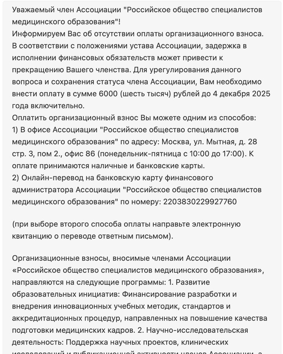 #ничегосвятого #внезапно #мошенники Неожиданно вот такие письма стали поступать членам Ассоциации. Естественно, мы не имеем к этому никакого отношения. Членство в Ассоциации для физических лиц бесплатное. Пожалуйста, читайте внимательно и не поддавайтесь обману мошенников! Письмо рассылается с адреса rosmedobr@internet.ru 💡 Вся корреспонденция от Ассоциации отправляется ТОЛЬКО с адресов rosmedobr.ru