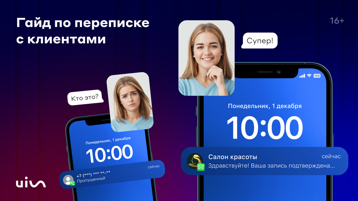 Не стесняйтесь напоминать о себе, если клиент записан на услугу, или когда слишком долго принимает решение. Здесь все так же, как со звонками и почтой, только удобнее: сообщение не попадет в спам, а вы увидите, прочитал его клиент или нет.