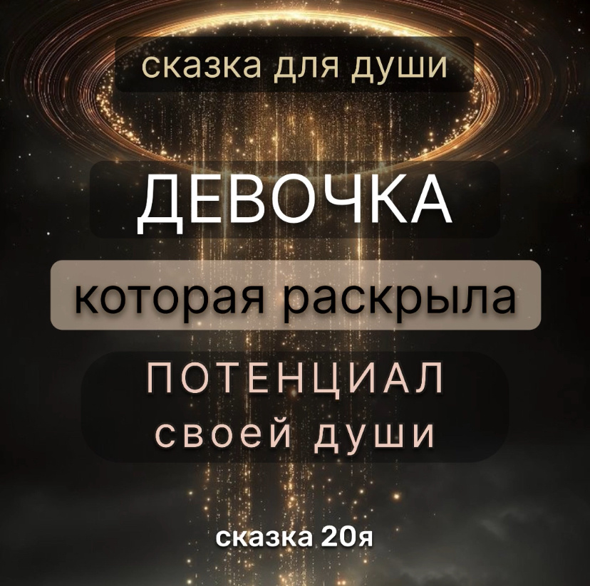 Девочка, которая раскрыла потенциал своей души Внутри Девочки был сад с диковинными растениями. Но она так давно не заходила туда, что забыла о нём, а растения перестали цвести. Вместо этого она носила с собой коллекцию историй прошлого: «Меня не поняли», «Мне недодали любви», «Со мной поступили несправедливо». И когда жизнь становилась трудной, она перебирала эти истории, словно ища в них ответ — почему всё именно так. Её мир теперь полностью состоял из этих историй-воспоминаний, под которыми она уже не видела тех ростков прекрасных цветов — своего потенциала. Однажды, ощутив привычную тяжесть на душе, она прошептала: «Опять всё из-за них...» — и уже хотела начать искать в прошлом историю, которая во всём виновата. Но тут заговорил её медальон. Код Возможности: «Ты смотришь на следы прошлого, но не видишь семян своего потенциала, которые уже в тебе есть с рождения. Ты — не музей обид. Ты — живая земля, где могут прорасти семена твоих идей. Но сами они не вырастут. Им нужен любящий с