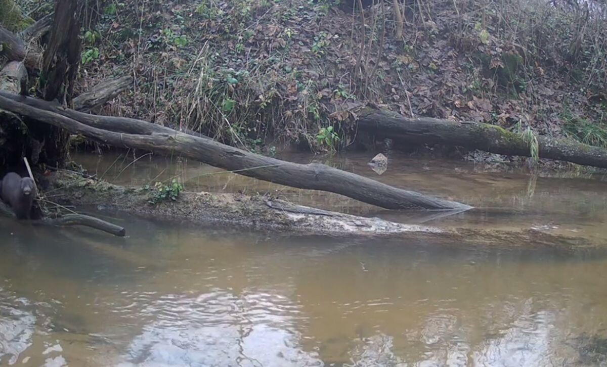 Норка из "Калужских засек" попала на видео во время водных процедур