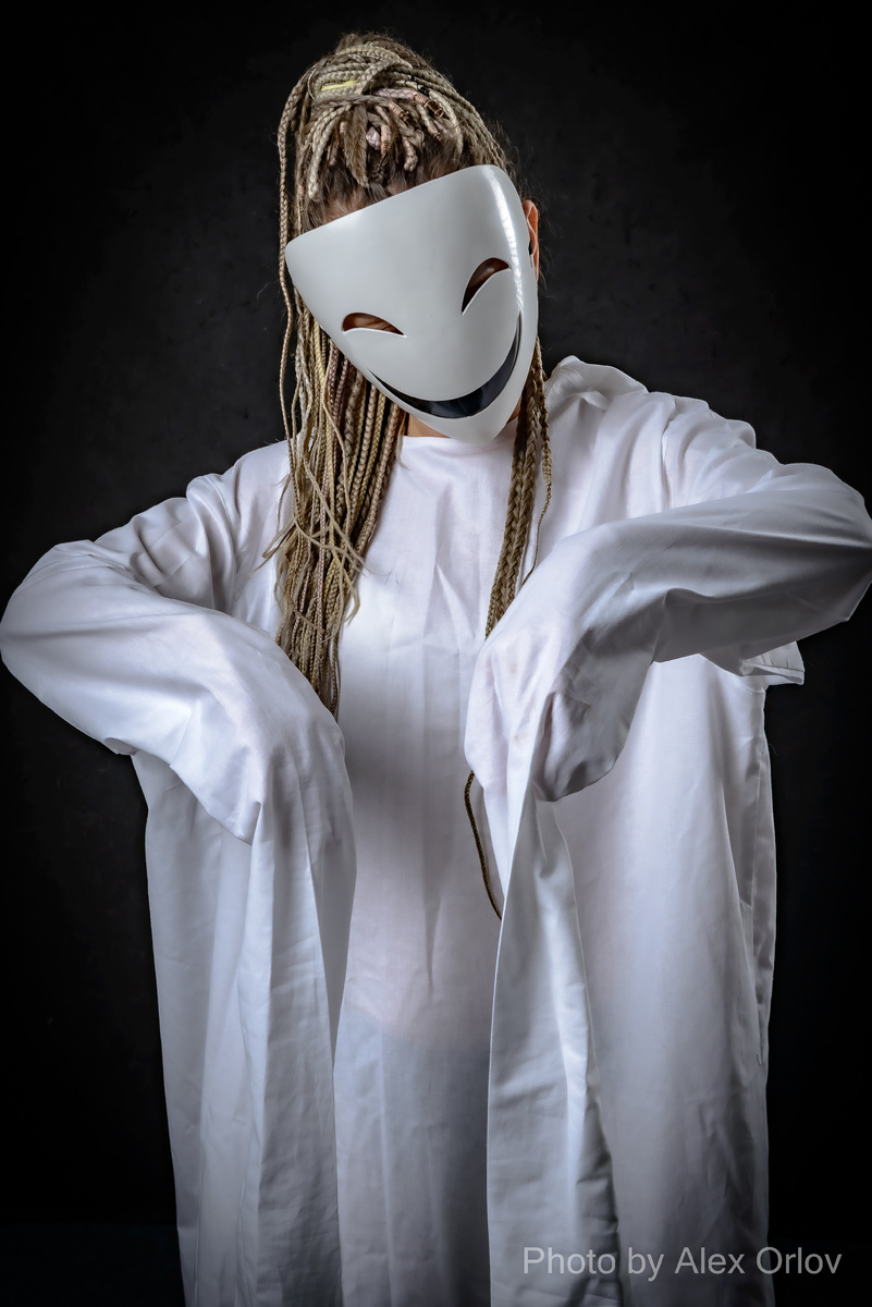 Здравствуйте уважаемые подписчики и читатели канала. Большое спасибо за ваше внимание к моему творчеству. Как-то увидел объявление. Психолог искала фотографа для реализации своих задумок. Причем такого, чтобы ее идеи находили отклик в сознании исполнителя. Почему бы и не поработать в этом направлении. Интересно же. Так получилось, что особо процесс съемки не обсуждали. Ставку делали на экспромт. Она начинает, я развиваю и дополняю. И наоборот. На том и сошлись. Изначально сказала, что хотела бы получить серию кадров в смирительной рубашке. Якобы это нужно для визуализации ее статей. Без проблем, как скажете. Оделась. Сперва думал снимать на белом фоне. По аналогии с больницей. Гляжу, достает маску. Упс. Нет. Только на черном. Чувствую, нужен конфликт. И лучше когда будет построено на контрасте. Появилась мысль - взгляд на человека из под маски. И наоборот. Вот тут пригодилось зеркало. Было в старой студии, да никак не получалось перевези. Все недосуг. Однако успел под эту затею. Догад