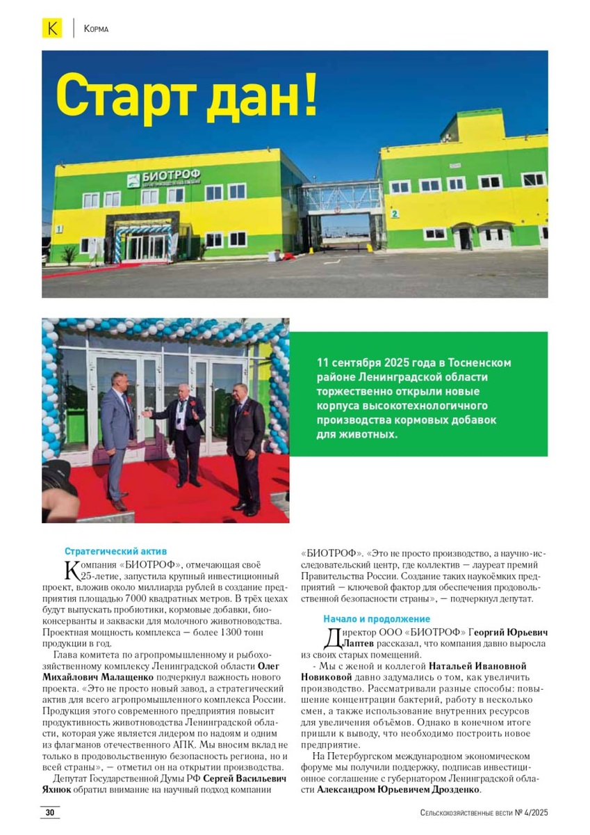 Радует, когда открываются новые производства. Одно из таких знаменательных событий: компания «БИОТРОФ» запустила крупное предприятие по выпуску пробиотиков, кормовых добавок, биоконсервантов и заквасок для молочного животноводства. Подробнее: https://agri-news.ru/zhurnal/2025/4-2025/start-dan/ #АПК#АПКЛО#Биотроф
