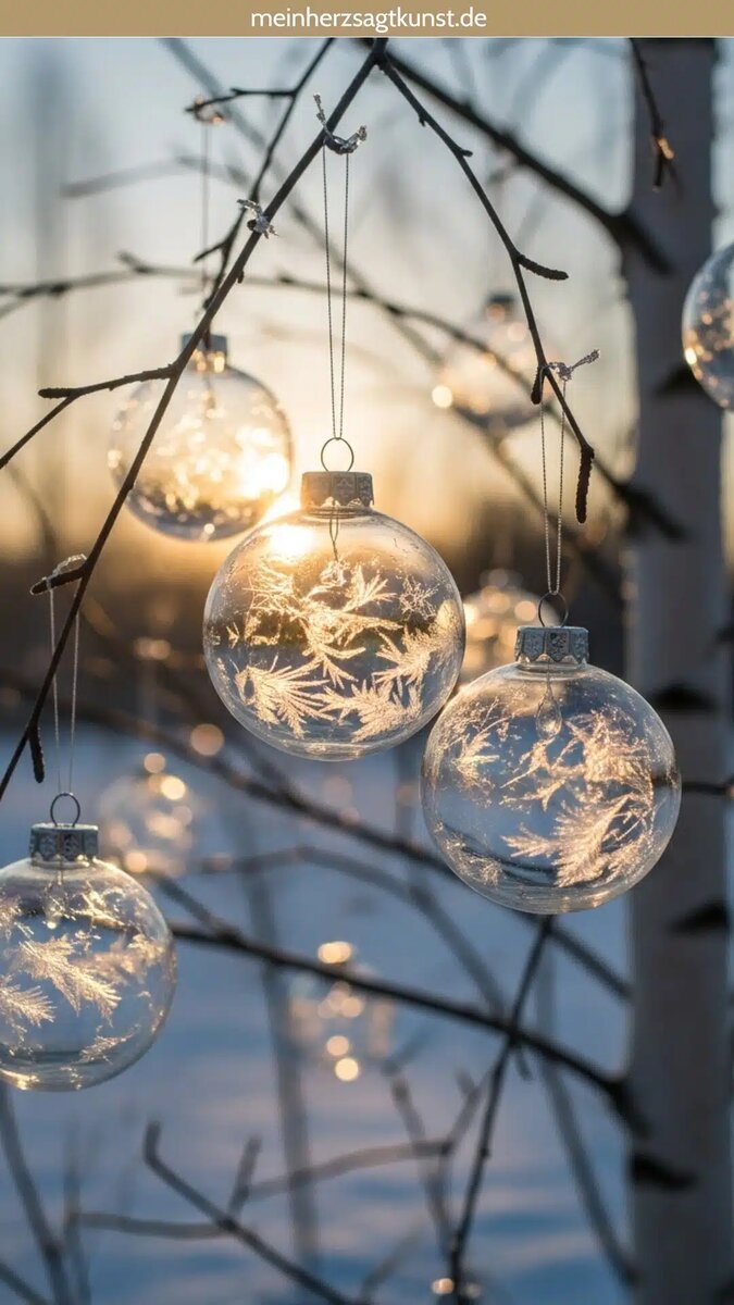 Важную роль здесь играет игра света: елочные шары ловят солнечные лучи днём и таинственно сверкают в сиянии гирлянд вечером.