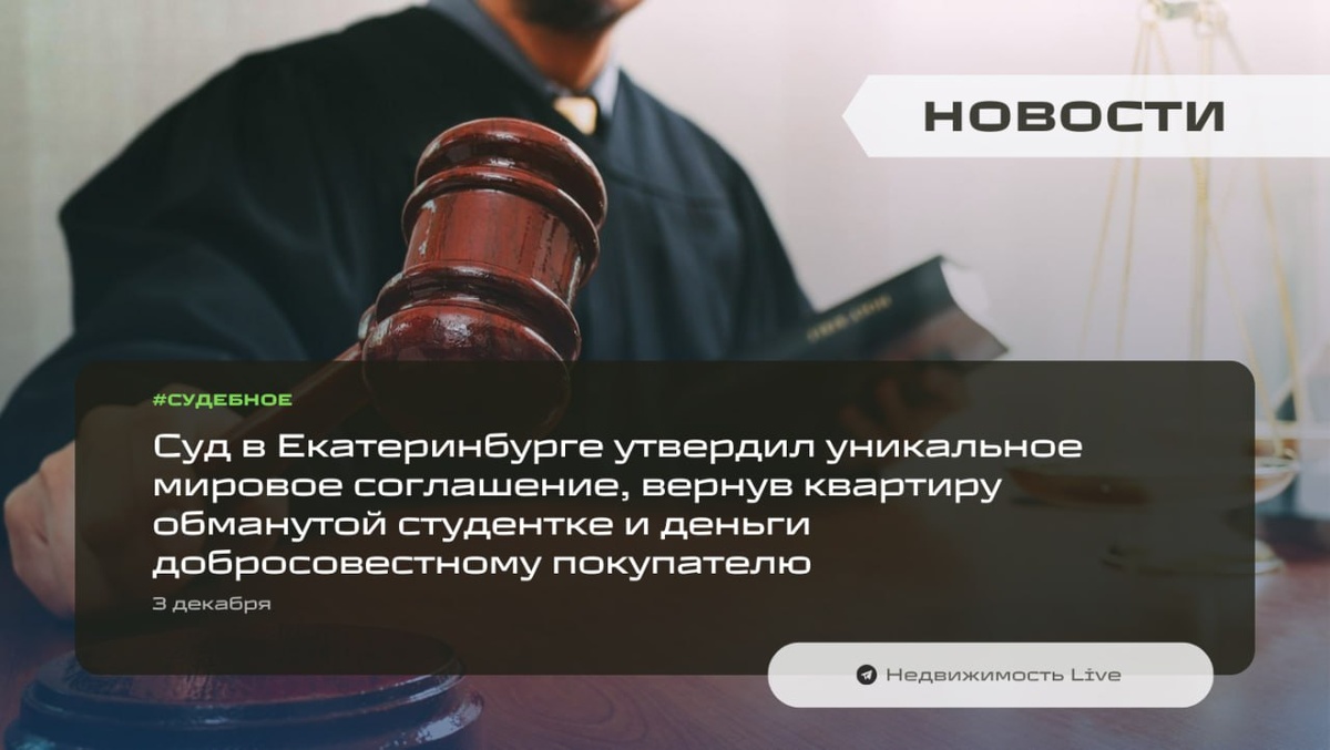 ⚡️ Суд в Екатеринбурге утвердил уникальное мировое соглашение, вернув квартиру обманутой студентке и деньги добросовестному покупателю