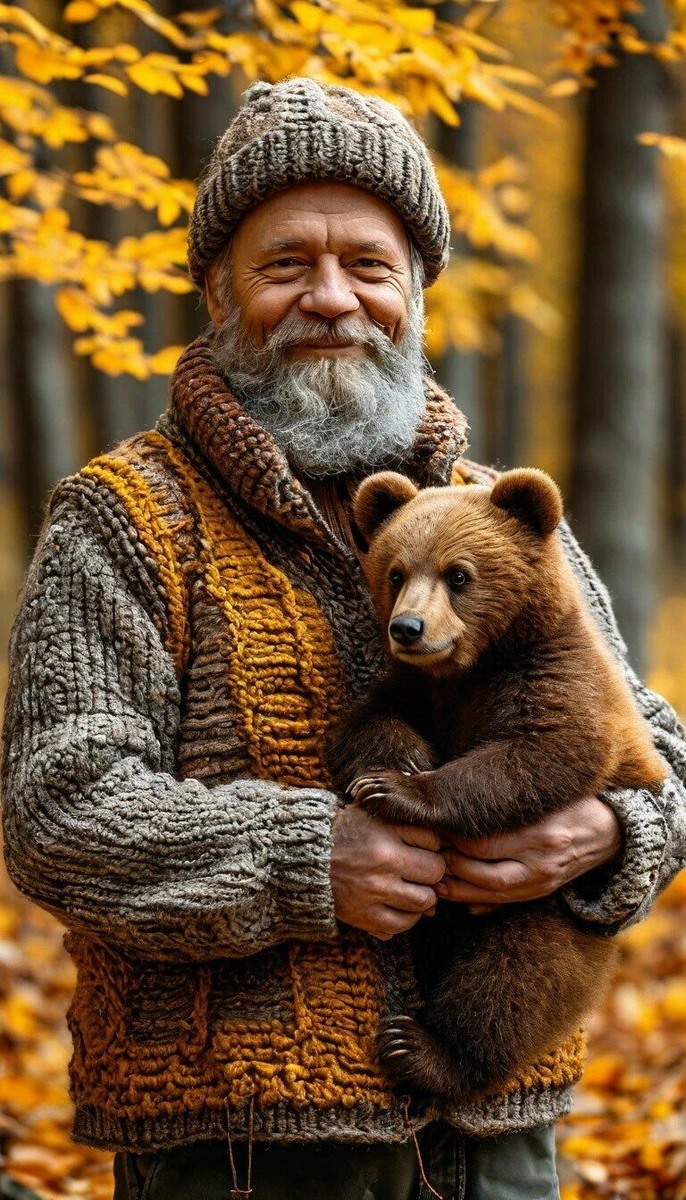Впервые за долгие годы он не чувствовал себя одиноким. Утро началось с тишины, печь уже остыла, на окнах замёрзли узоры похожие на ветви. Иван проснулся раньше обычного солнце ещё не встало. Он поднялся, подошёл к печи и осторожно подкинул несколько поленьев. Когда пламя ожило, комната снова наполнилась дыханием тепла. Рядом на старом одеяле лежал медвежонок, он был неподвижен, только грудь едва заметно приподнималась. Иван нагнулся, коснулся рукой шерсти: тело стало чуть теплее. Старик вздохнул с облегчением. Он достал миску, подогрел воду и добавил немного мёда. Поставил рядом, поднёс ложку к мордочке, несколько капель скользнули по языку зверёныша и тот слабо шевельнулся.