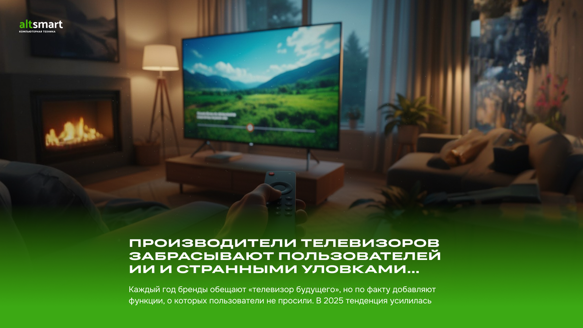 Телевизоры получают новые функции с ИИ. Что действительно происходит на рынке и почему это волнует пользователей Телевизоры остаются одним из самых популярных устройств для дома. Пользователи ожидают от них стабильной работы, качественной картинки и удобного управления. Однако в последние годы производители активно добавляют функции, которые связаны с искусственным интеллектом и расширенными способами взаимодействия. В 2025 году эта тенденция стала особенно заметной, что вызвало обсуждения среди владельцев техники и специалистов по обслуживанию Smart TV. Многие бренды заявляют о создании телевизоров нового поколения. Однако значительная часть нововведений ориентирована не на удобство пользователя, а на развитие собственных экосистем и сбор данных. Рассмотрим, что действительно меняется на рынке и почему эти изменения вызывают вопросы. Что изменилось в телевизорах LG Компания LG продолжает выпускать качественные OLED модели. Они демонстрируют высокую яркость и стабильную работу с HDR к