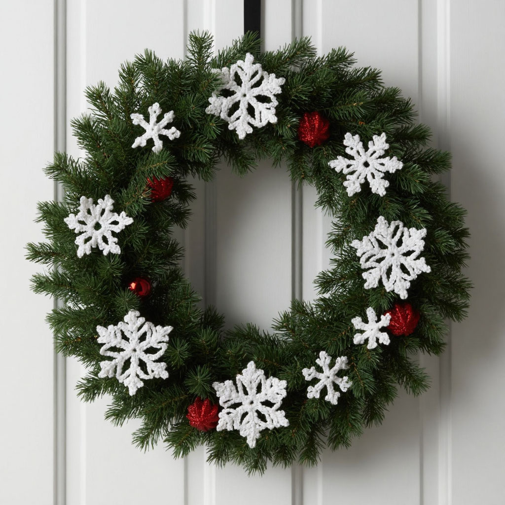 Пора задуматься о самом уютном украшении — венке на дверь. Но что, если отойти от классики и создать его… крючком? Связанный венок — это на века! Он не осыплется, его можно стирать, и каждый год он будет встречать праздник с прежним теплом. Я подобрала 5 идей вязаных венков, от которых загорятся глаза даже у опытных мастериц. Выбирайте свой! 1. Классика в Пряже: Ажурный «Еловый» Венок Идеально для создания праздничного настроения. Вместо хвои — ажурные мотивы, напоминающие снежинки и еловые лапки. Свяжите его из белой, зеленой или красной пряжи и украсьте деревянными бусинами-«ягодками». Совет: Используйте хлопковую пряжу для четкости узора. 2. Пушистое Чудо: Венок из Пряжи «Травка» Мгновенный результат и море уюта! Хотите венок за вечер? Берите толстый крючок и пряжу «травку». Просто обвяжите основу столбиками без накида — и пушистая красота готова! Украсьте большим бантом и помпоном. Совет: Для основы подойдет обруч или скрученная в кольцо газетная трубочка. 3. Яркий Геометрия: Ве