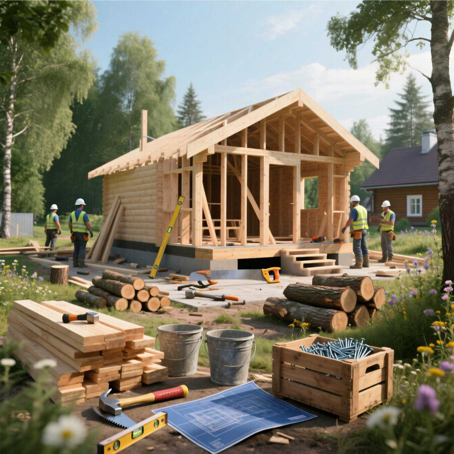 Деревянную баню от фундамента до полного оснащения можно построить в