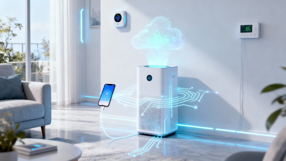 - "Завтра ожидается выброс смога в районе" → Система заранее включит очиститель на ночь.