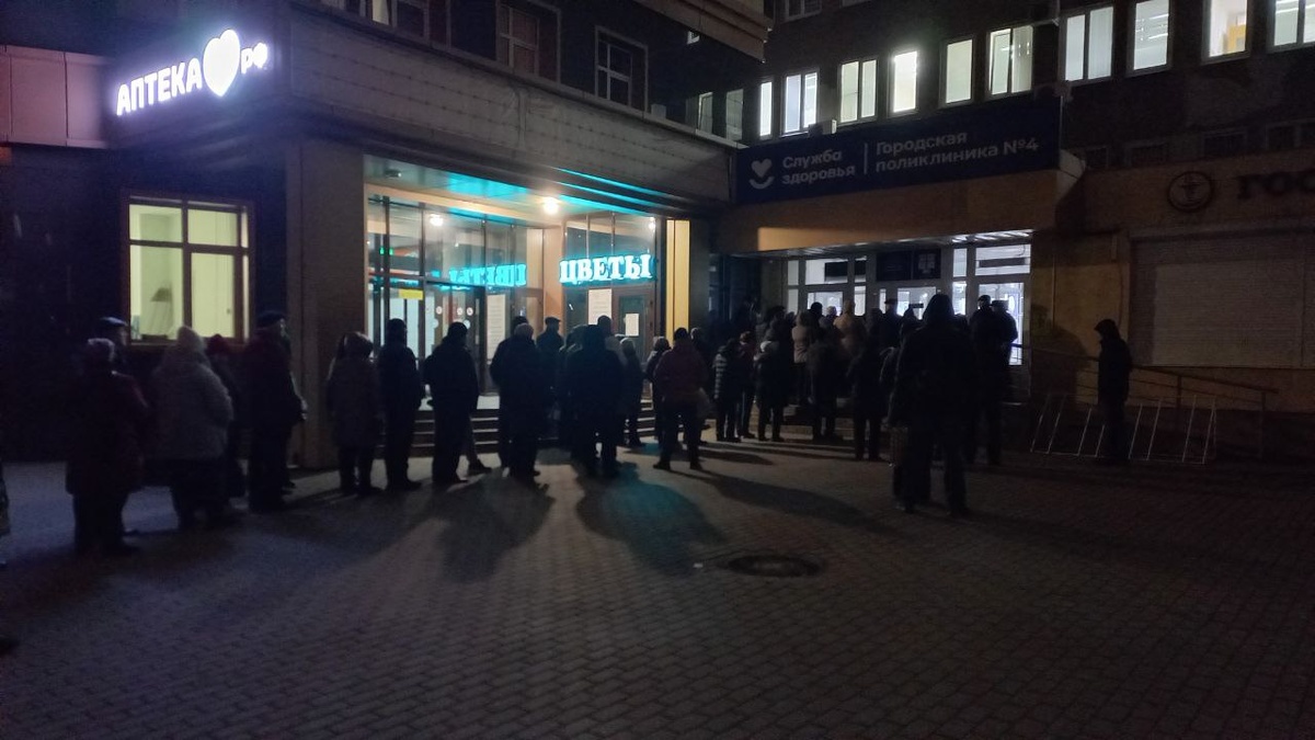 Очередь из сотни человек у воронежской поликлиники сняли на видео