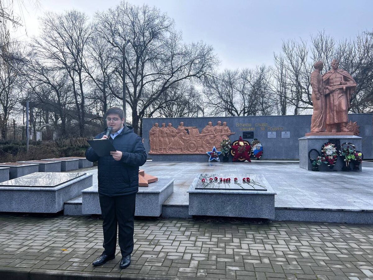 3 декабря, в памятный для всей России день — День Неизвестного Солдата, состоялась церемония возложения цветов к Братской могиле воинов-освободителей на мемориале Воинской Славы. Собравшиеся отдали дань глубокого уважения всем, кто не вернулся с полей сражений, чьи имена остались неизвестны, но чей подвиг бессмертен. Минута молчания стала символом вечной признательности и скорби. Мы, наследники Великой Победы, помним о беспримерном подвиге и несгибаемой стойкости поколения победителей. Эта священная память будет жить в наших сердцах и передаваться от отцов к детям.