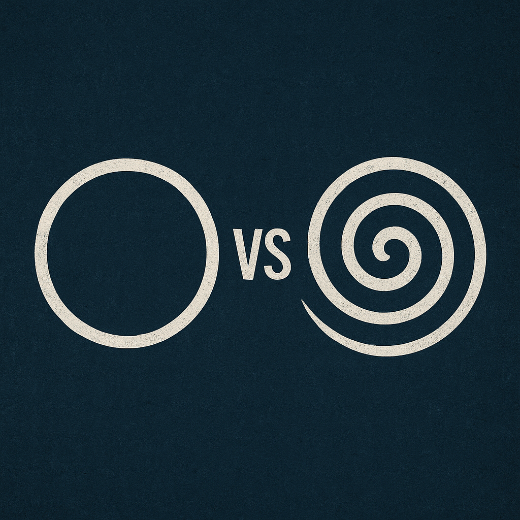 На уровне ощущений разница простая. Круг это "как всегда". Спираль это "знакомо, но что то чуть иначе". Не драматический прорыв, не крик "я все поменял", а маленький сдвиг.