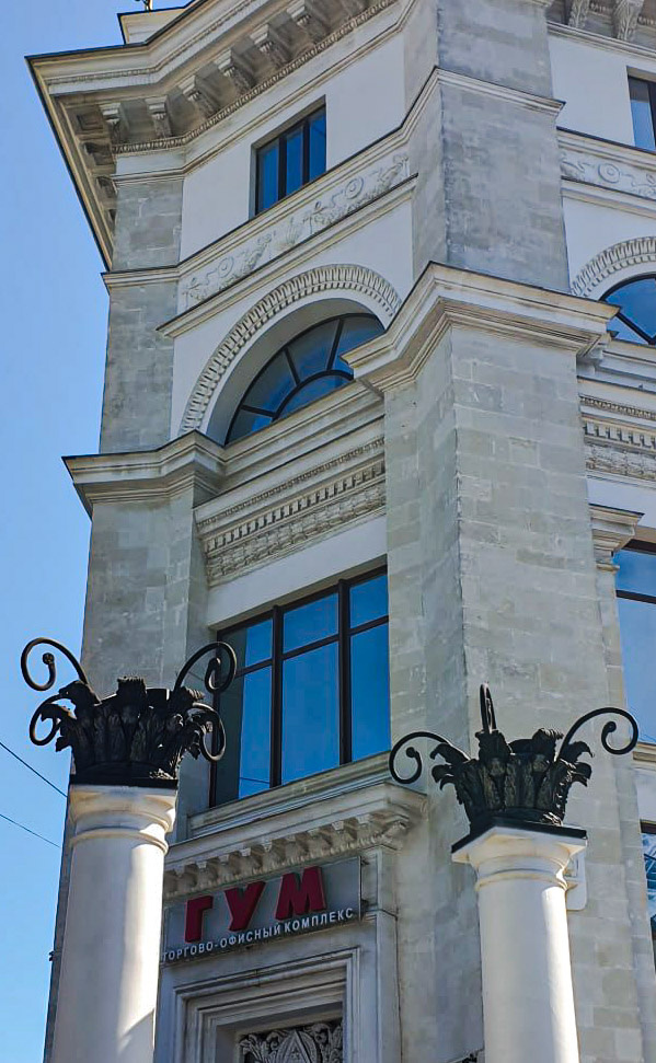 Красивое массивное здание в историческом центре города, не особо привлекает внимание туристов. Редкий посетитель заглядывает в расположенные внутри магазинчики... Первым владельцем дома был Я.Я. Анненков, потому здание и осталось в истории как Дом Анненкова. Cевастопольский ГУМ создавался не как привлекательный торговый обьект. Здание начало свою историю в 1898 г. как благотворительный проект. Это был доходный дом с дешёвыми съёмными квартирами для постояльцев. Это был первый высотный дом в Севастополе, построенный из железобетона, по проекту архитектора А. Вейзена. Целых шесть этажей плюс цокольный. Дом удачно вписан в рельеф местности, повторяет в плане угол пересечения улиц, на которых расположен. В верхней части были полукруглые оконные проемы, вдоль фасада третьего этажа и по крыше тянулась баллюстрада. Начинал строительство меценат генерал-майор Яков Яковлевич Анненков. Рассчитанный на 500-800 человек, благотворительный отель должен б