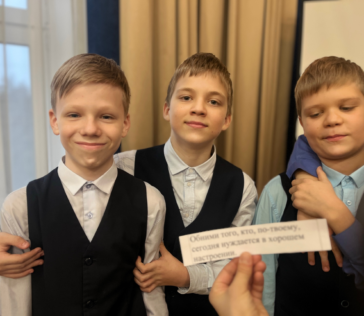 В Кадетской школе МЧС Первого Московского кадетского корпуса для наших самых юных ребят — пятиклассников — прошло особое занятие под названием «Код дружбы». Его провели психолог школы и педагог-организатор, чтобы помочь ребятам стать настоящей сплоченной командой. Какой была цель? Перед педагогами стояло сразу несколько важных задач: ✅ сплотить коллектив — превратить одноклассников в друзей, которые поддерживают друг друга; ✅ выявить лидеров — увидеть, кто может мягко и уверенно вести за собой команду; ✅ Снять эмоциональные барьеры — показать ребятам, что проявлять свои чувства — это не страшно, а совершенно нормально. Что же происходило на занятии? Ребята окунулись в мир практических игр и упражнений, где главными правилами были доверие и открытость. Например, одним из заданий было: «Обними того, у кого сегодня, как тебе кажется, плохое настроение». Сначала было немного непривычно, но вскоре зал наполнился улыбками и искренними объятиями. Это простое действие учит детей эмпатии — у