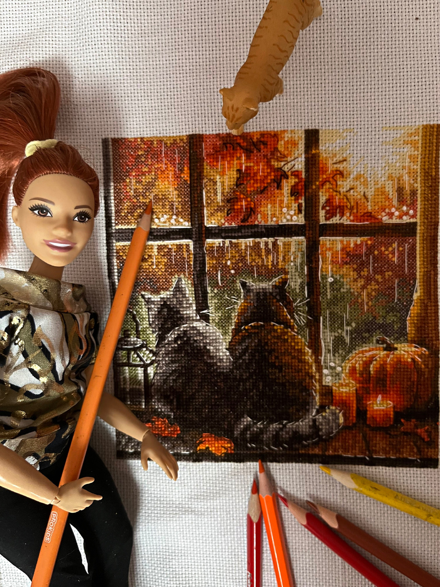 Добрый вечер всем 😊. Сегодня вспомнила, что забыла показать, что же у нас за Василисой вышилось за осень. Исправляемся😊. А еще у любительницы живности Василисы новый питомец😊. Рыжий кошак Вася😀. Ну а мы уже вовсю работаем над зимней вышивкой❄️.