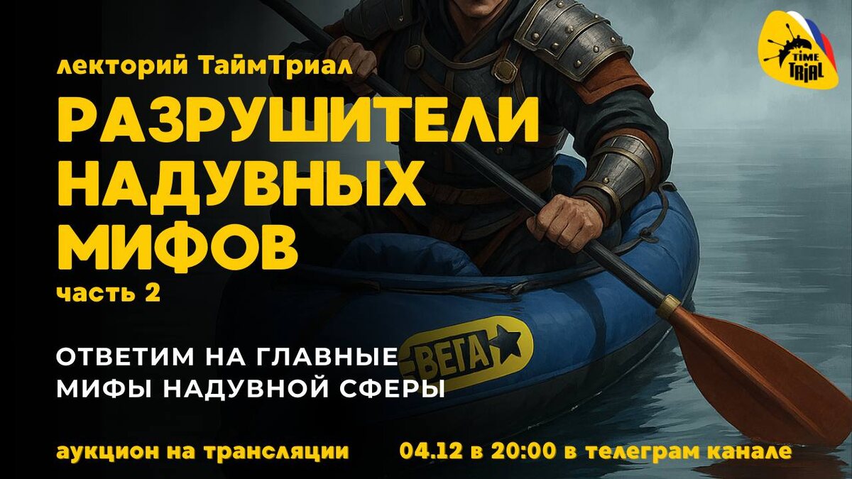 Разрушители надувных мифов. Часть 2 — завтра в Telegram! Продолжаем серию про надувные изделия для спорта, туризма и спецзадач. В первой части мы разобрали самые громкие мифы и базовые принципы. Во второй — идём дальше: больше практики, реальных кейсов и деталей, которые помогают выбирать и использовать снаряжение без ошибок. В эфире: — продолжение мифов и разбор спорных моментов: что правда, а что маркетинг — как читать материалы и конструкцию «вживую»: на что смотреть при выборе — эксплуатация и уход: что реально продлевает срок службы — Q&A: отвечаем на ваши вопросы в чате И куда без сюрприза 😉 В конце эфира — аукцион на секретную позицию с дисконтом 50%+. Узнаете, что это, прямо в эфире. 📅 Завтра, 04.12 ⏰ 20:00 📍 В нашем Telegram-канале TimeTrial Ставьте напоминание и зовите тех, кому актуальны надувные решения — будет ещё полезнее, чем в первой части.