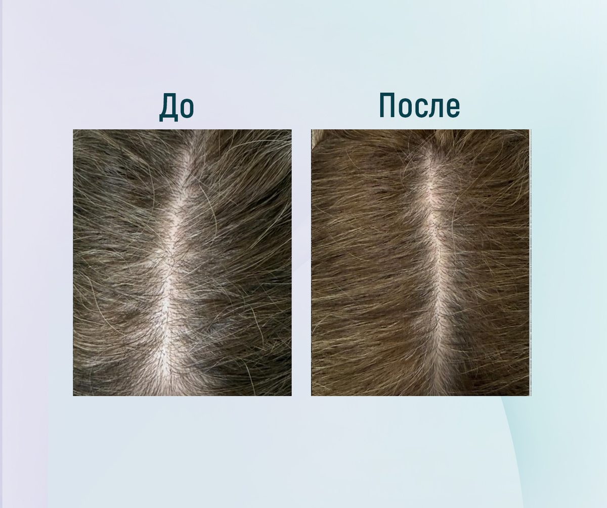 Клинический случай из практики к.м.н., врача-дерматолога, трихолога, терапевта, трансплантолога Юлианы Болеславовны Титаренко. Пациентка обратилась к доктору с жалобами на поредение волос. После сбора анамнеза и тщательной диагностики установлен диагноз: андрогенетическая алопеция. Назначена домашняя терапия с применением средств Time to grow. — Топические лосьоны: Лосьон Кофептид — один раз в день через день в чередовании с аптечным средством. Домашняя процедура с использованием Дарсонваля: 3 раза в неделю до применения топического лосьона. — Для повышения эффективности применения наружных средств рекомендовано проводить Домашний пилинг “Маска-прешампунь”- 1 раз в неделю с экспозицией 30 минут. Обеспечивает глубокое очищение кожи головы и устьев фолликулов, нормализует микробиом, подавляет активность патогенной флоры, повышает проницаемости кожи и т.д. — Базовый регулярный уход для бережного очищения и увлажнения кожи головы и волос: Восстанавливающий шампунь с биоцерамидами — каждое
