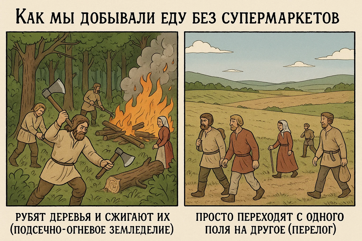 Земледелие: Огонь, топор и много работы Восточные славяне вели натуральное хозяйство — всё делали сами для себя. Главным занятием было земледелие, но оно сильно отличалось от региона: В лесах (север): Использовали подсечно-огневое земледелие. Это был адский труд! Сначала рубили деревья, ждали, пока они высохнут, сжигали их (зола — удобрение!), корчевали пни и только потом сеяли. 🌳🔥🌾 В степях (юг): Использовали перелог. Просто бросали истощенное поле ("пусть отдохнет") и переходили на новое. Также они разводили скот, ловили рыбу и занимались бортничеством (собирали мёд диких пчёл в дуплах деревьев — бортях). 🍯🐝 Общество: От рода к племени и князю Сначала славяне жили родовыми общинами, но потом перешли к соседской общине (вервь или мир). Люди жили вместе не потому, что родственники, а потому, что соседи. Племена: Общины объединялись в племена (поляне, древляне, кривичи и т.д.). Князь и дружина: Для защиты от врагов выбирали военного вождя — князя. Вокруг него собиралась дружина —