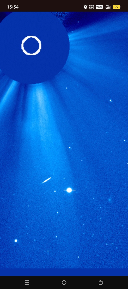 Сегодня появились уникальные фото от космического телескопа SOHO/LASCO c3 Первая фотография была сделана в девять часов утра, а вторая через четыре с половиной часа.. Сделал увеличенные фрагменты фото где хорошо видно кольца Сатурна в профиль и рядом какая то мелкая комета.. Она на первой фотке хорошо видна, затем за несколько часов превратилась в еле различимую точку. Но все равно это она. А значит перед нами точно Сатурн, а не скажем Меркурий с небольшой черточкой от следа метеора... Вот тут все хорошо видно, что газовый гигант находится ниже нашей звезды, но она его освещает так как буд то Солнце находится между Землей и Сатурном. Затем можно сопоставить расстояние до нашего объекта, который должен находится в самой дальней от нас точке в Афелии это примерно полтора миллиарда километров или в 10 раз дальше чем находится сейчас от Земли Солнце. А теперь внимательно приглядитесь к фотографии вам не кажется, что газовый гигант находится ближе чем светило? И вам не показало