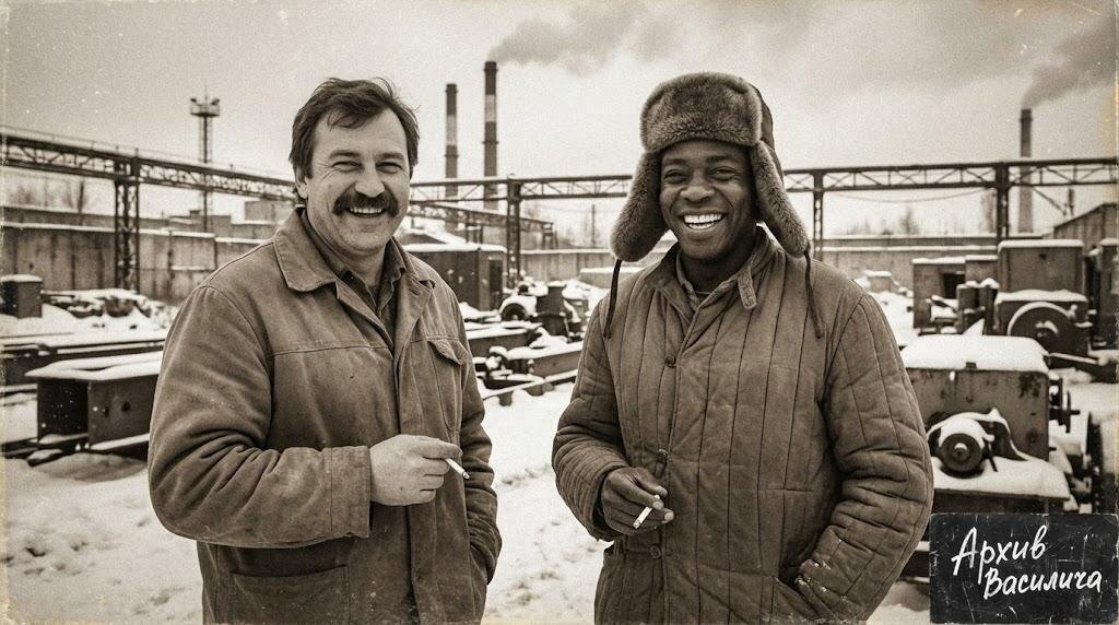 Представьте картину: зима, минус 25. У проходной стоит парень — глаза черные, улыбка белоснежная, а сам дрожит так, что пуговицы на пальто брякают. Это к нам по обмену опытом прислали кубинцев. Веселые ребята! Только к нашему климату они были готовы, как я — к полету в космос. Пришлось брать шефство: учить носить ватники, есть сало и... правильно пить «огненную воду». Приветствую вас, товарищи! Мы часто вспоминаем СССР как закрытую страну. А ведь на заводах у нас кого только не было! Вьетнамцы (мы их звали ласково «вьетнамские космонавты» за шлемы на мопедах), болгары, африканцы. Но самые душевные были кубинцы. 1982 год. К нам в цех прислали бригаду — учиться на сварщиков. Звали их Мигель, Хосе и (вот не вру!) Владимир (видимо, в честь Ленина назвали). Первое, что мы поняли — они погибнут. Кубинец в минус двадцать — это самое несчастное существо на свете. Они кутались во всё, что находили. Шарфы до глаз, шапки ушами вниз (хотя мы уши не опускали даже в минус 30). Начальник цеха Петров