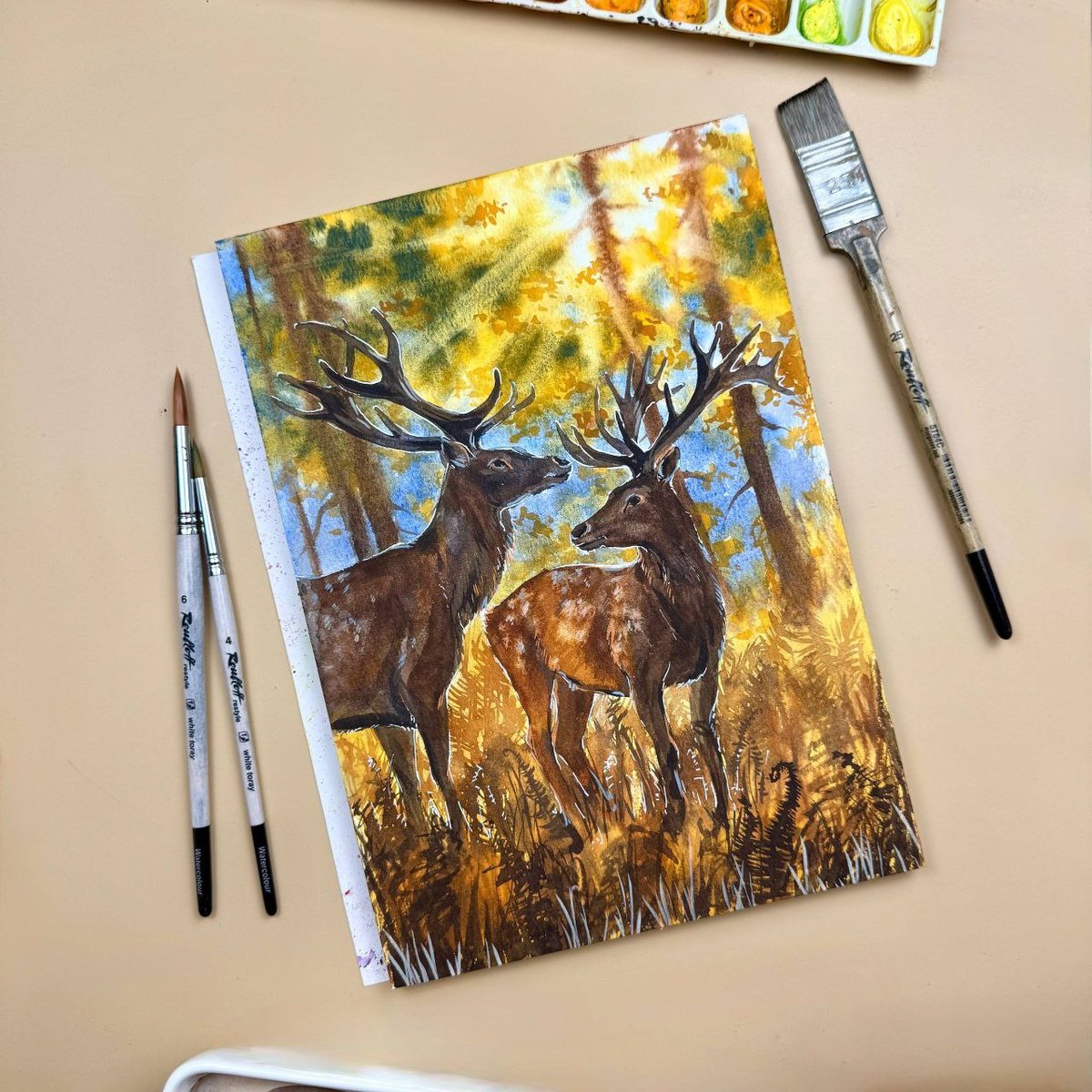 🦌 Новый сюжет в творческом клубе Dari Art - рисуем акварелью оленей в лесу!