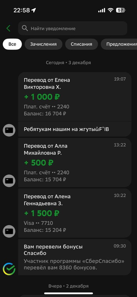 ОТЧЕТ О ПЕРЕВОДАХ ЗА 03.12.2025 г. 💥 Бонусы СберСпасибо от Евгения Ружникова + 8360 р 💥 Алена Геннадьевна З + 1500 р 💥 Алла Михайловна Р + 500 р 💥 Елена Викторовна Х + 1000 р На данный момент собрано средств 25064 рублей ✊ Огромное спасибо всем 🙏💕 Нашим!!! Вместе Победим!!! Сбор продолжается... Осталось собрать: 5000 рублей 🙏